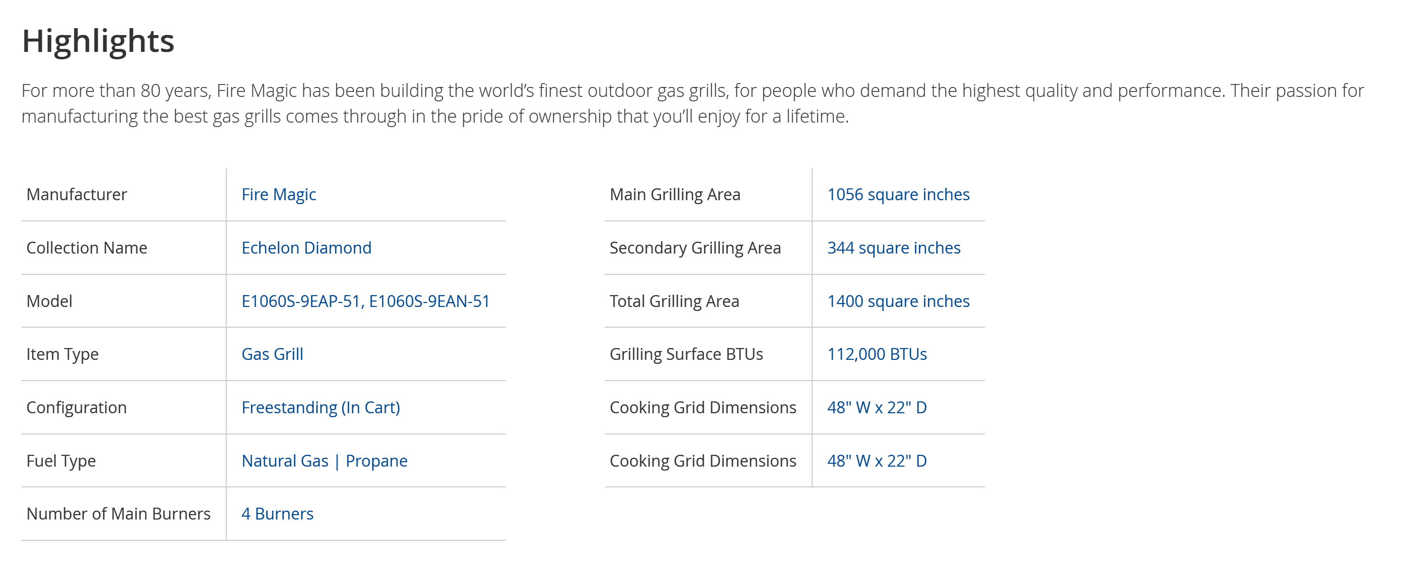 - Diamond Sear cooking grids feature a wide, flat top, optimally transferring heat from the burner to the cooking surface
