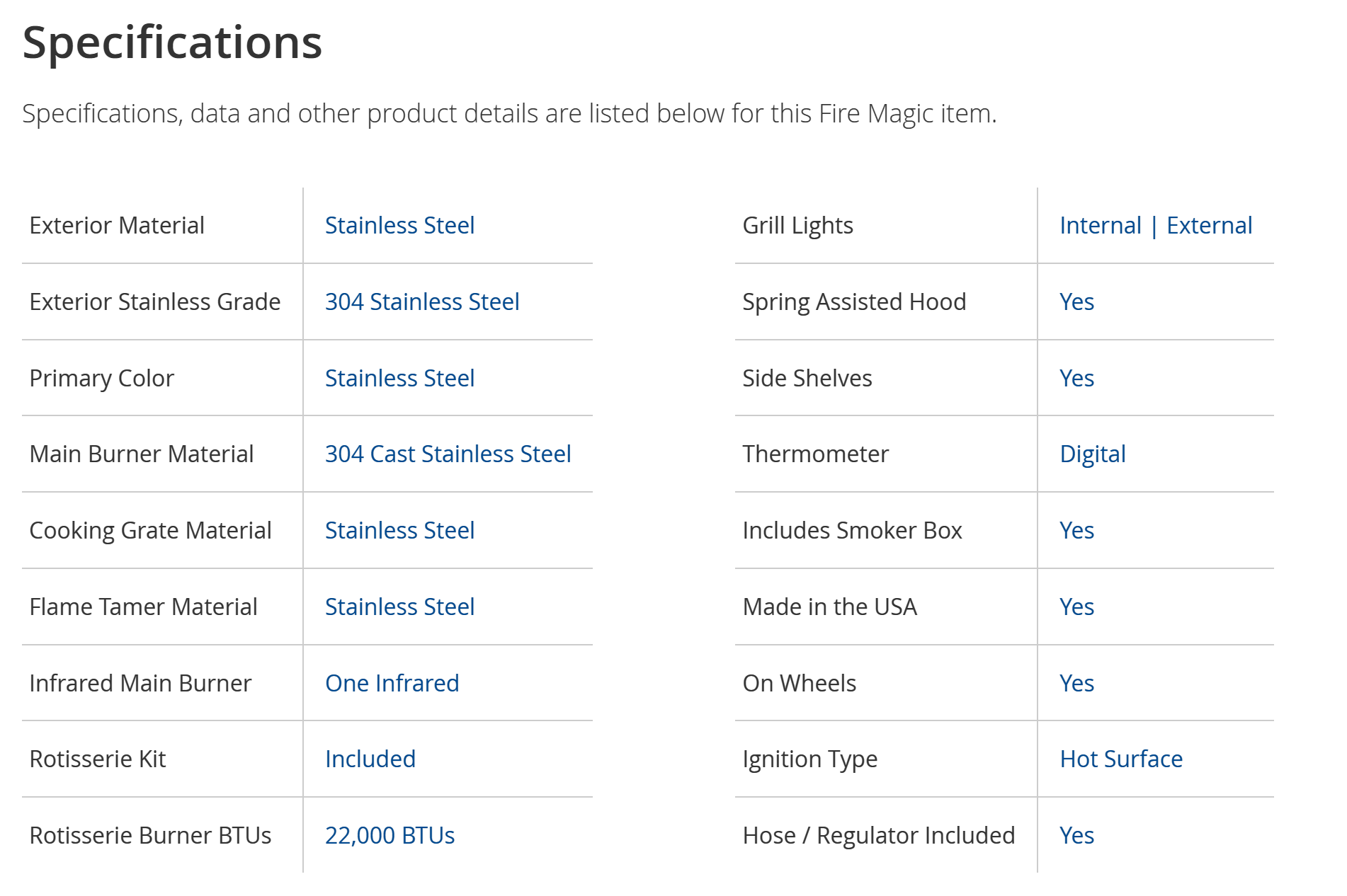 - Back-lit control knobs & angled, interior halogen lights let you grill day or night