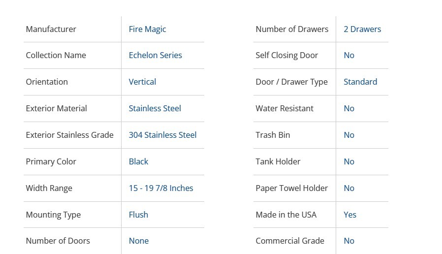 - Never lose another crucial grilling tool when you store them in the organizational Fire Magic Echelon Flush 14-Inch Black Double Access Drawer With Soft Close.
