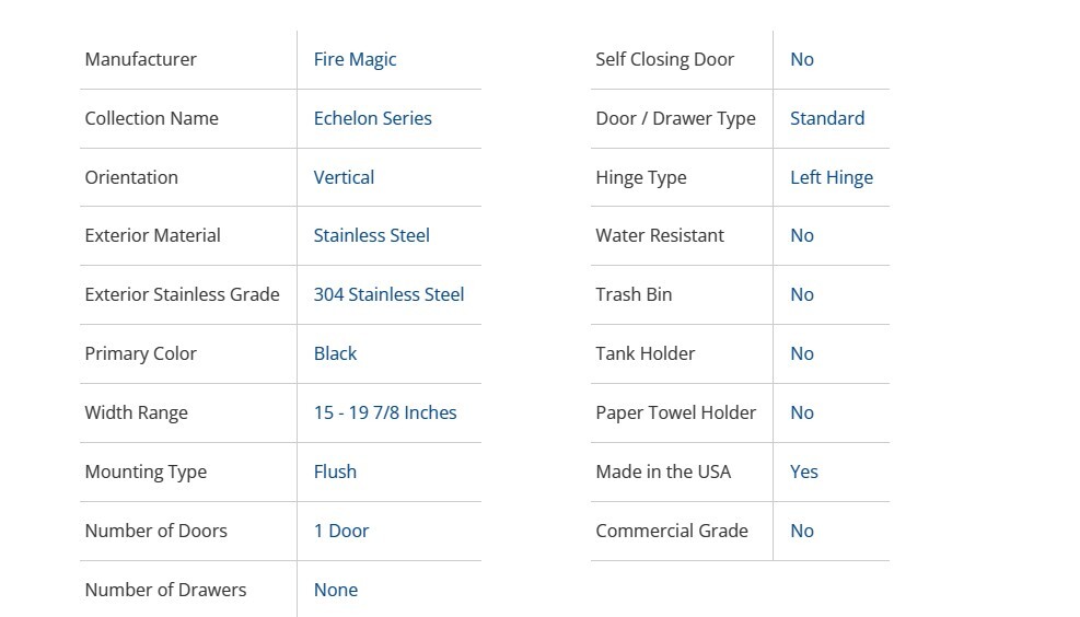 - Tuck away your important grill accessories behind the stylish, modern Fire Magic Echelon Flush 14-Inch Black Left-Hinged Single Access Door fashioned from strong stainless steel.