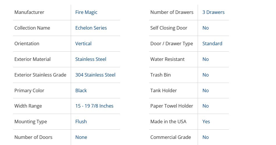 - With its three layers of drawer-style storage, the Fire Magic Echelon Flush 14-Inch Black Triple Access Drawer With Soft Close will keep all of your most used accessories and tools tucked away but close at hand.