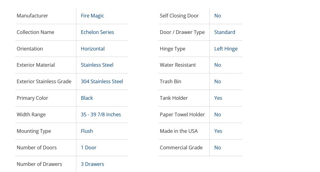 - Give yourself plenty of space for storage and a convenient worktop to boot with the installation of this two-drawer, two-cabinet Fire Magic Echelon Flush 36-Inch Black Access Door With Platter Storage.