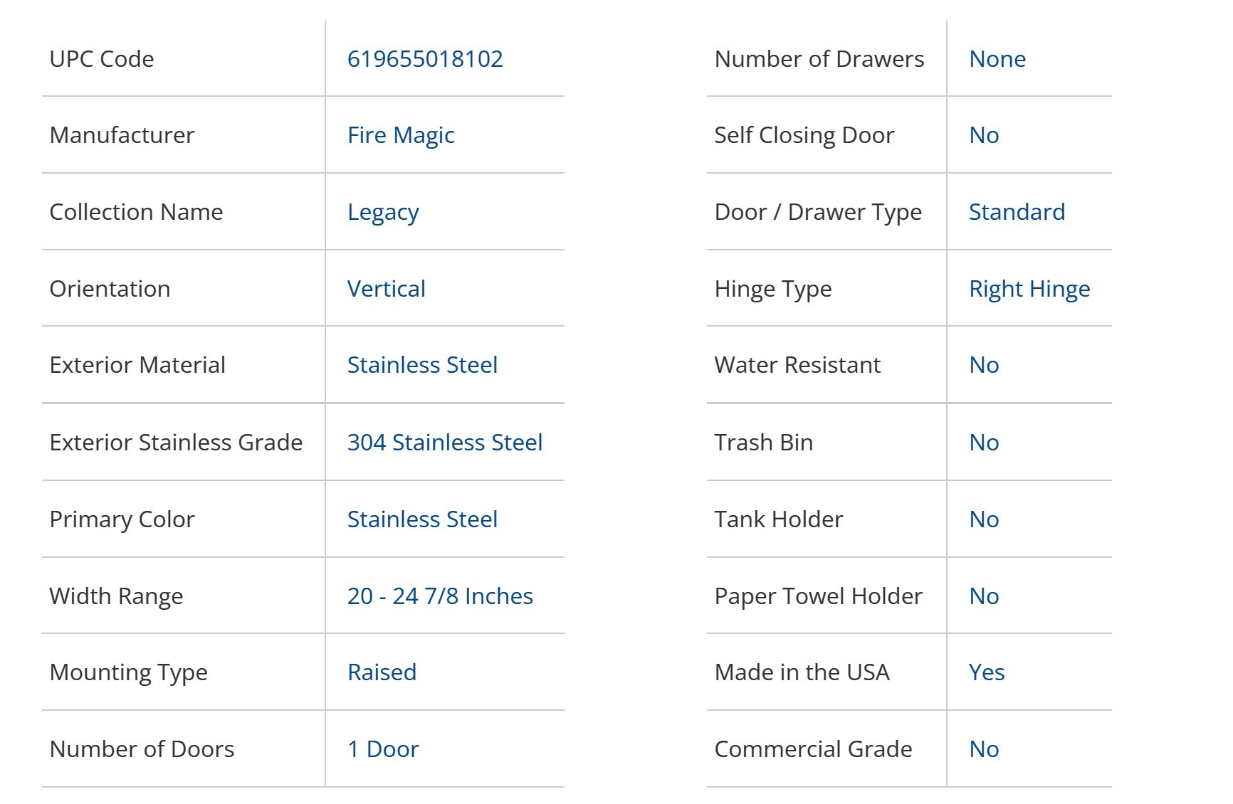 Modernize the look of your grill while adding plenty of concealed storage through the use of the Fire Magic Legacy 17-Inch Stainless Single Access Door.