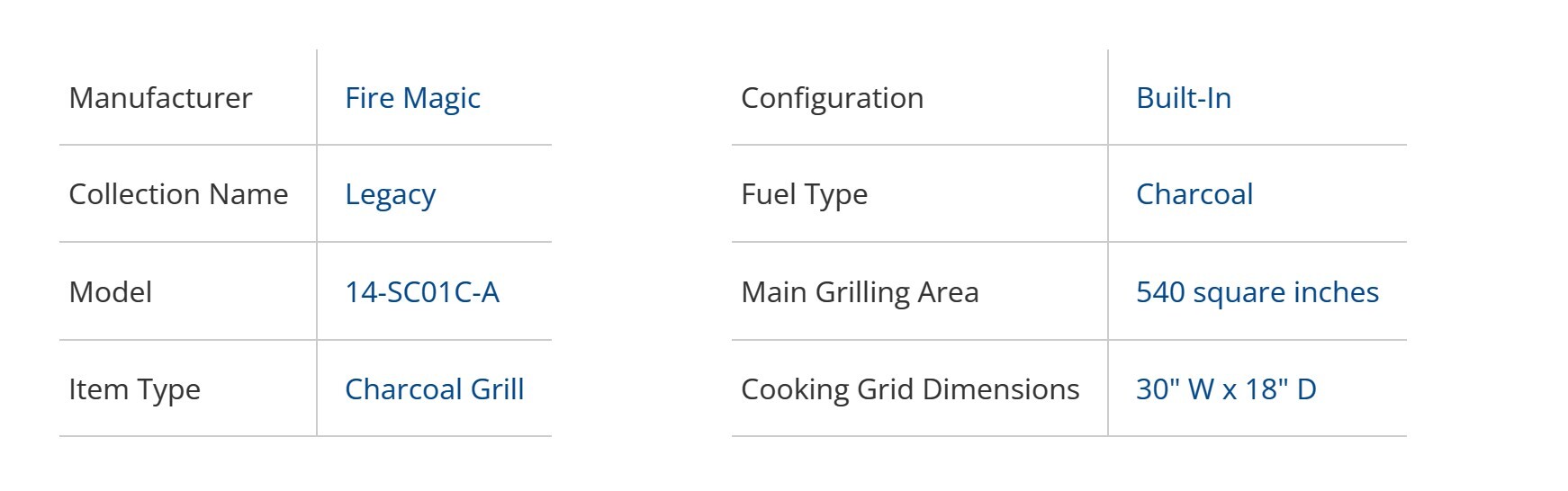 Fire Magic Legacy 30-Inch Built-In Smoker Charcoal Grill