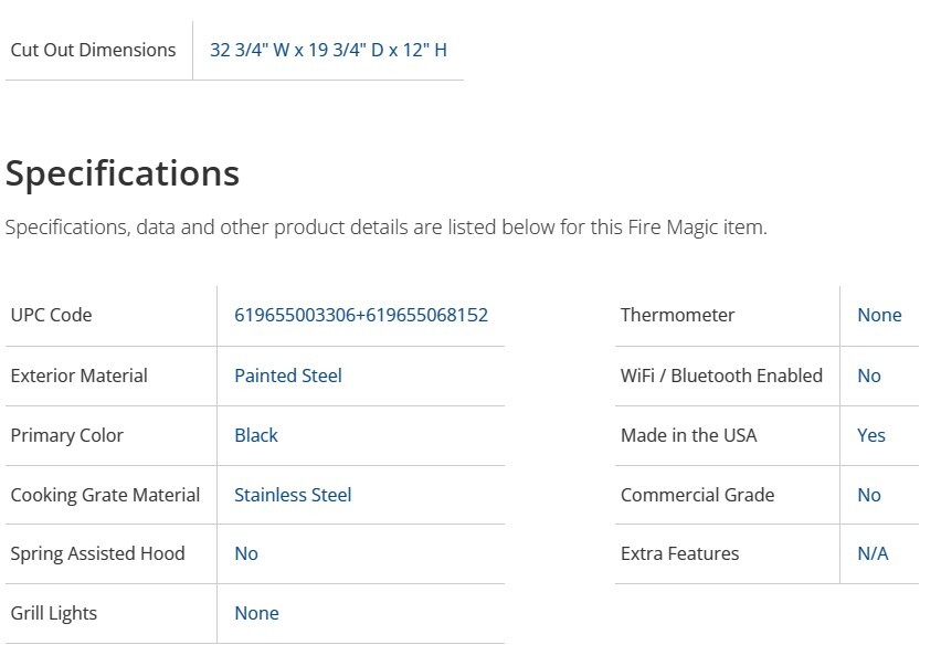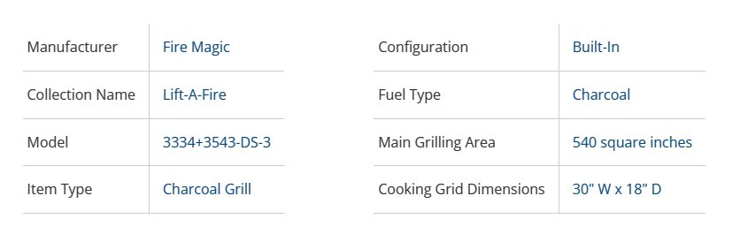 Cook up your meals on a grill that needs no frills to do its job well. The Large Fire Magic Lift-A-Fire Built-In Charcoal Grill is a straightforward, rectangular grill with a stainless steel cooking grate that gives you plenty of space for grilling meat and vegetables at the same time. The product measures a total size of 32.75 inches in width by 19.75 inches in depth by 12 inches in height.