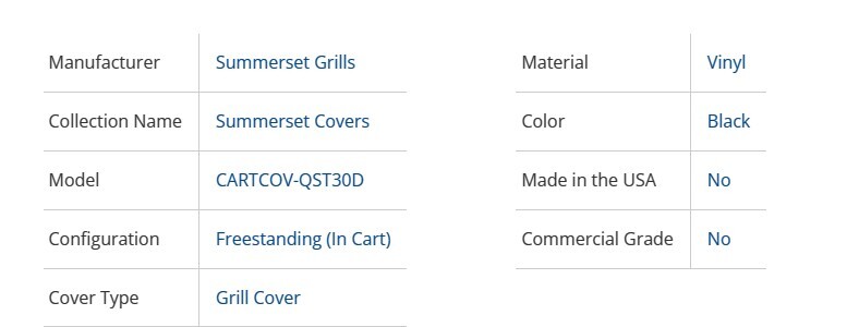 - Custom fitted for Summerset Quest 30-inch freestanding gas grills