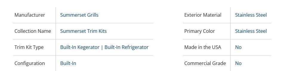 - The Summerset Stainless Trim Kit for 24-Inch Series Deluxe Refrigerators & Kegerators provides a sleek and tidy appearance for your outdoor kitchen setup. Made of high-quality 304 stainless steel, this trim kit ensures durability and a modern aesthetic.