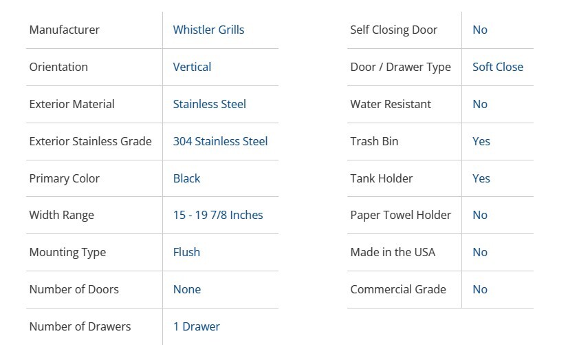 Whistler 16.5-Inch Black Stainless Steel Trash Drawer/Propane Tank