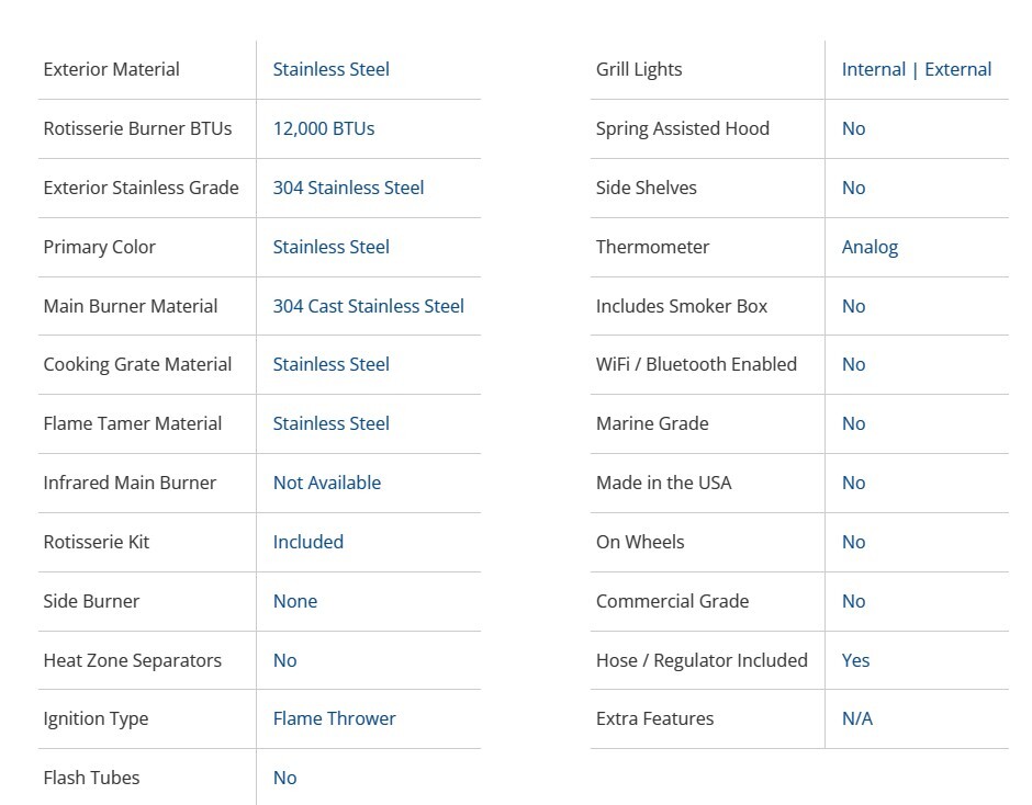 - Manufactured of premium 304 stainless steel and backed with a limited lifetime warranty to assure you have a lifetime of grilling satisfaction