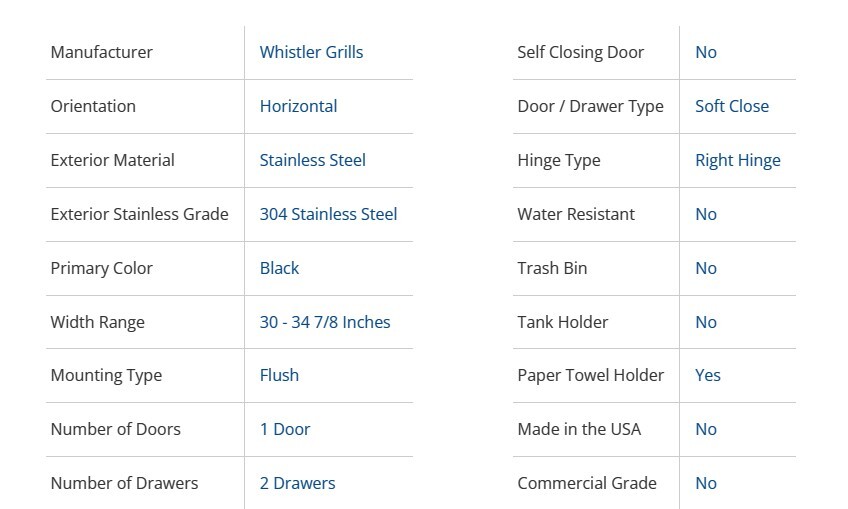 - The Whistler Double Drawer Door Combo CBADC-B Black Stainless Steel merges storage versatility with black stainless durability, offering two smooth-gliding drawers and a spacious cabinet door. This multi-functional unit includes a built-in paper towel holder for added convenience.