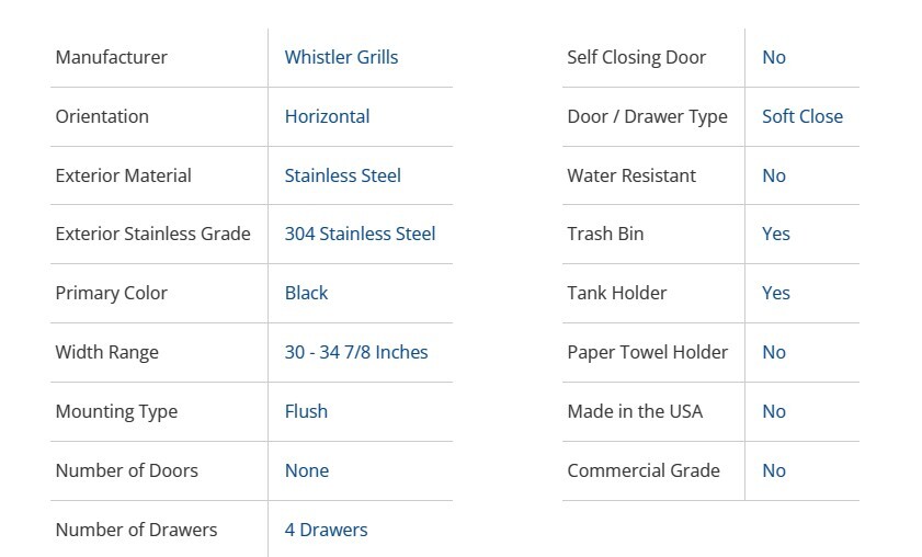 Whistler 33-Inch Black Stainless Steel Triple Drawer and Trash Can/Propane Tank Drawer