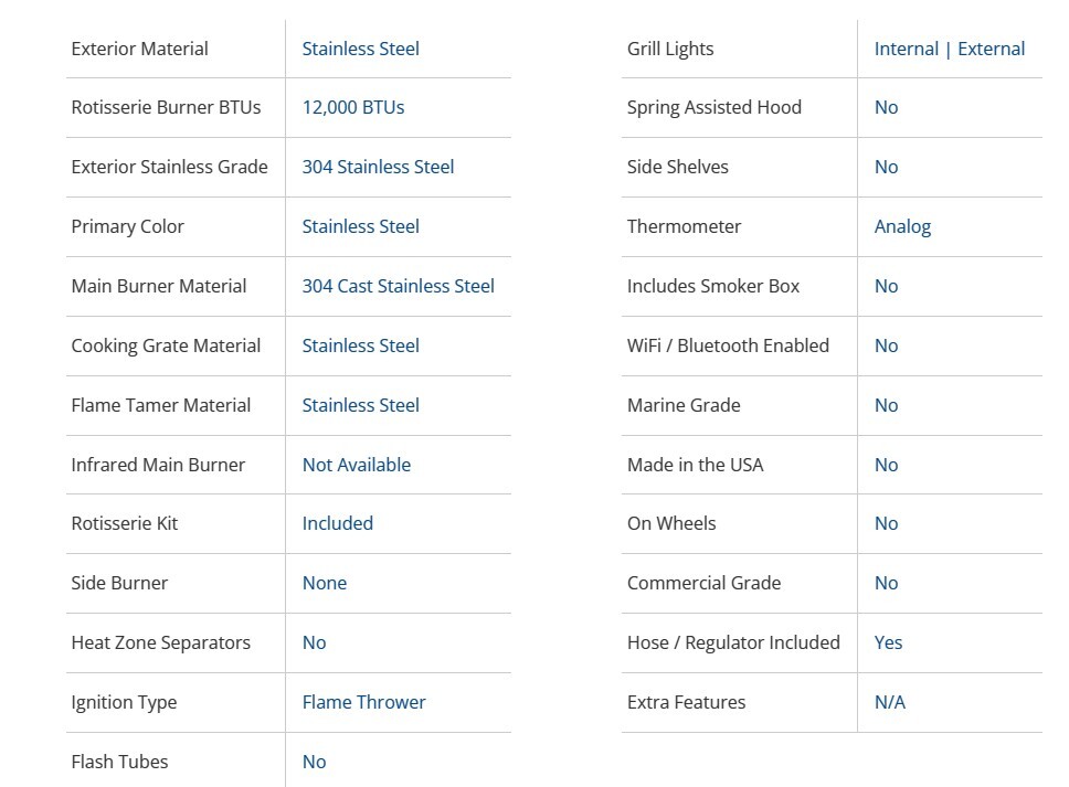 - Manufactured of premium 304 stainless steel and backed with a limited lifetime warranty to assure you have a lifetime of grilling satisfaction