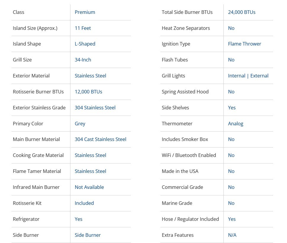 Whistler 4-Burner 132 x 92-Inch Gas Grill Island with 90-Degree Corner, Infrared Rear Burner, Refrigerator, Sink, Double Side Burner, and Rotisserie Kit