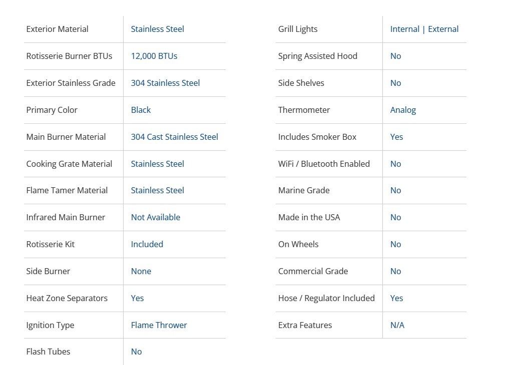 - Manufactured of premium 304 black stainless steel and backed with a limited lifetime warranty to assure you have a lifetime of grilling satisfaction