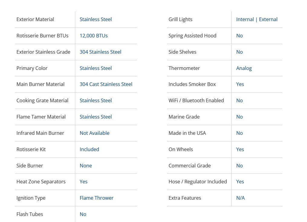 - Grill manufactured of premium 304 stainless steel and backed with a limited lifetime warranty to assure you have a lifetime of grilling satisfaction