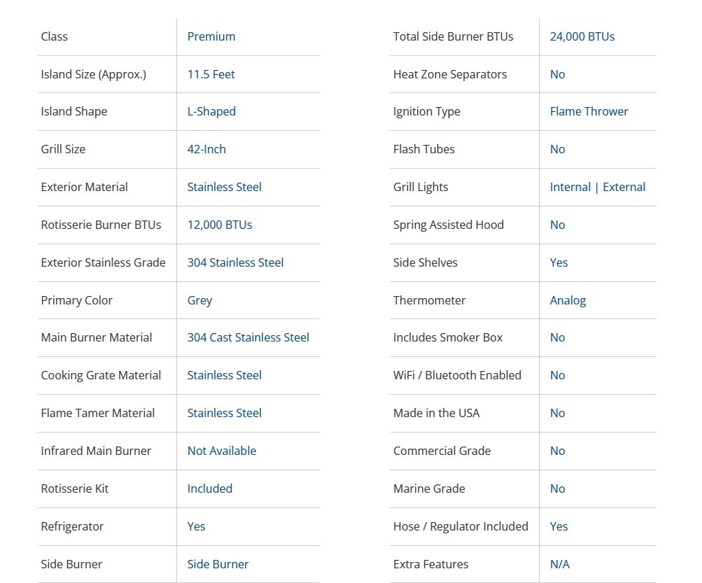 Whistler 5-Burner 140 x 92-Inch Gas Grill Island with 90-Degree Corner, Infrared Rear Burner, Refrigerator, Sink, Double Side Burner, and Rotisserie Kit