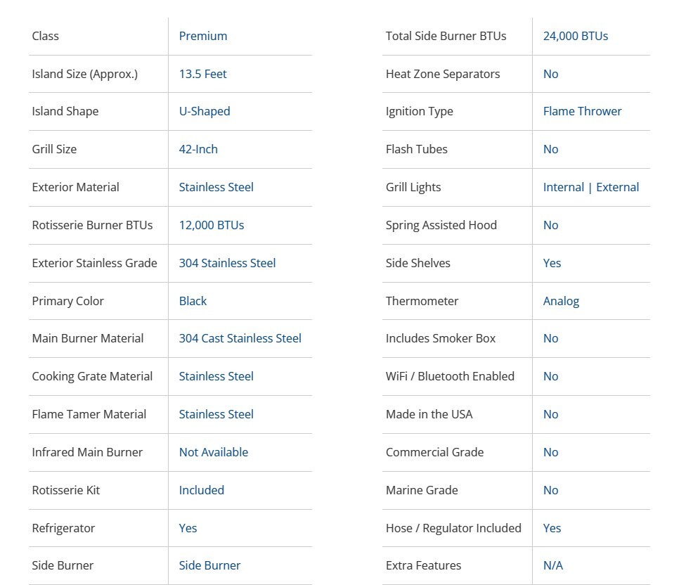 - Complete your outdoor kitchen with the help of the Whistler 5-Burner 163 x 92-Inch Gas Grill Island with Two 90-Degree Corners, Infrared Rear Burner, Refrigerator, Sink, Double Side Burner, and Rotisserie Kit - Black Stainless. Besides its spacious grill, this fully functioning U-shaped kitchen island provides you with a rotisserie kit for roasting meats. It also includes an infrared rear burner and double side burner. On one side of the unit, there is a sink for quicker cleanup. A backlit refrigerator rests on the opposite side, ideal for cold, perishable items.